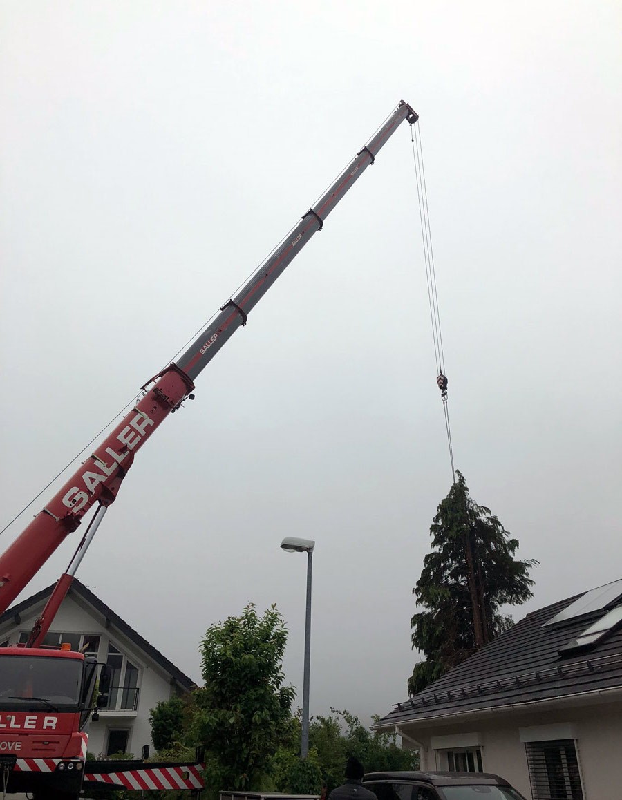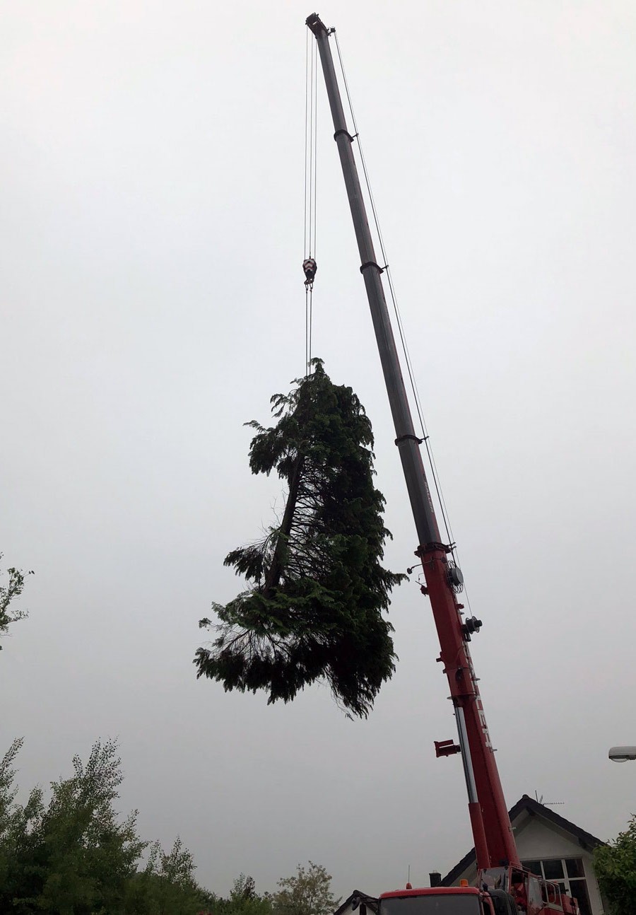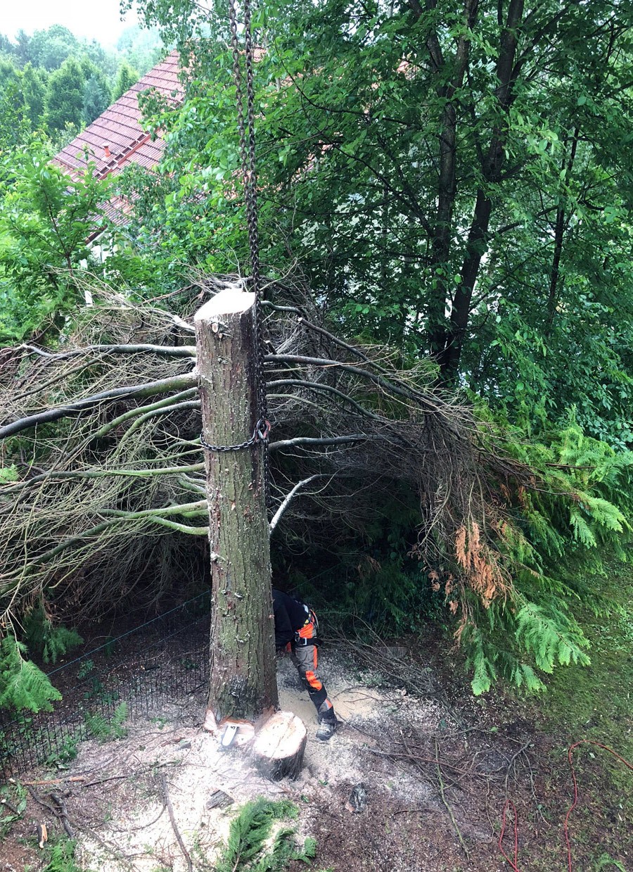 Durch ein starkes Unwetter beschädigte Bäume, mussten kurzfristig gefällt werden. Mit einem 100 Tonnen Autokran wurden diese dann verhoben. Sollten Sie demnächst auch eine Baumfällung der anderen Art haben, helfen wir Ihnen gerne weiter. Gerne bieten wir Ihnen alles aus einer Hand an, d.h. Kran und Fachkraft für Baumfällung.
