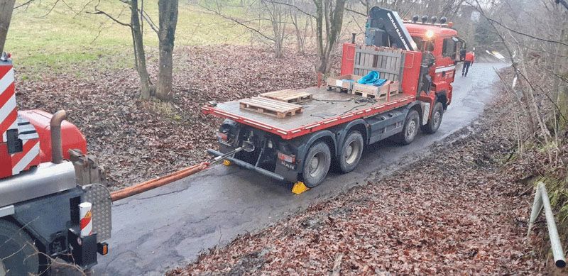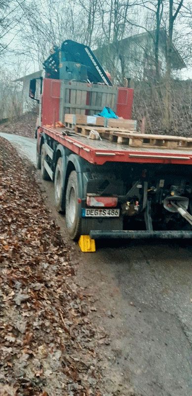 Im Februar 2025 musste unser Berge-Team einen festgefahrene LKW aus einer sehr misslichen Lage befreien. Ein Lastwagen fuhr sich in einer steilen Zufahrtsstraße in einem Wohngebiet bei Deggendorf fest. Eingesetzt wurde unter anderem unser schweres LKW-Bergefahrzeug, ein LKW-Ladekran, sowie ein City-Spezialkran und diverses Bergequipment.