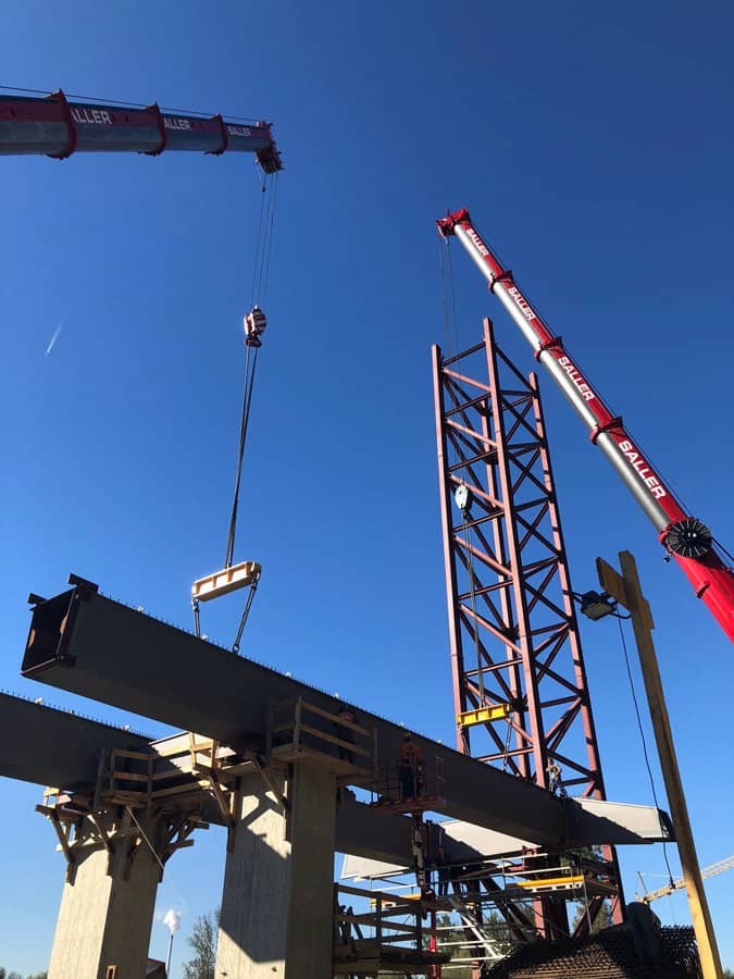 Seit diesem Jahr begleiten wir eines der größten Stahlbauprojekte in unserer Region mit Krantechnik. Das Brückenbauprojekt wird noch bis in das Frühjahr 2019 andauern. Zu Einsatz kommen in diesem Zeitraum Krane von 40-750 Tonnen.