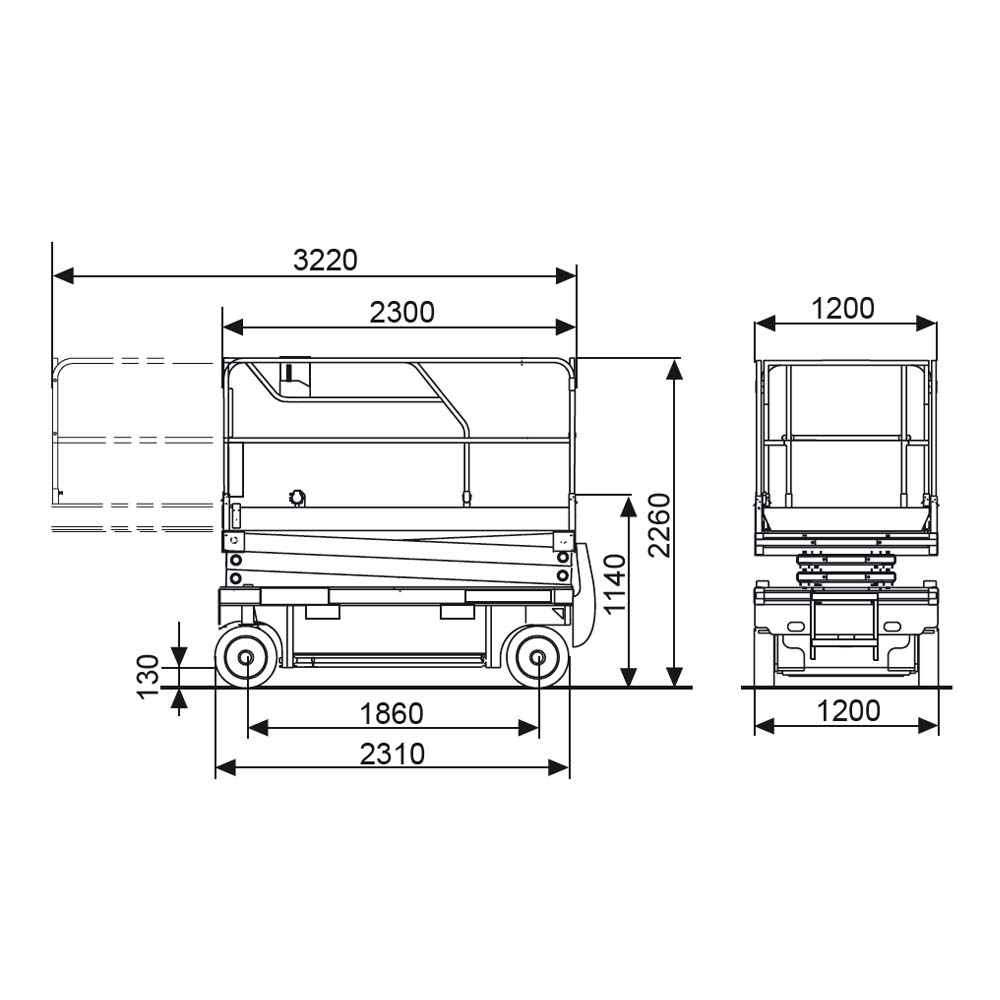 Arbeitskorb | 1,20 x 2,30 m/ erweiterbar auf 1,20 x 3,22 m |
